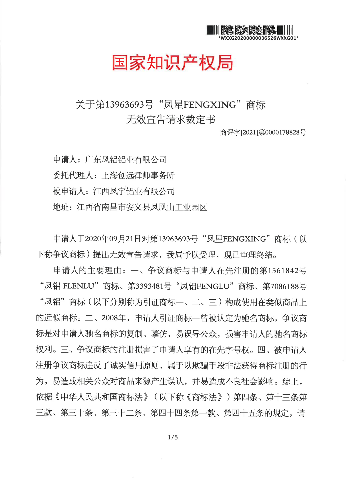 安庆辉知队 | 国家知识产权局:“凤星”商标无效